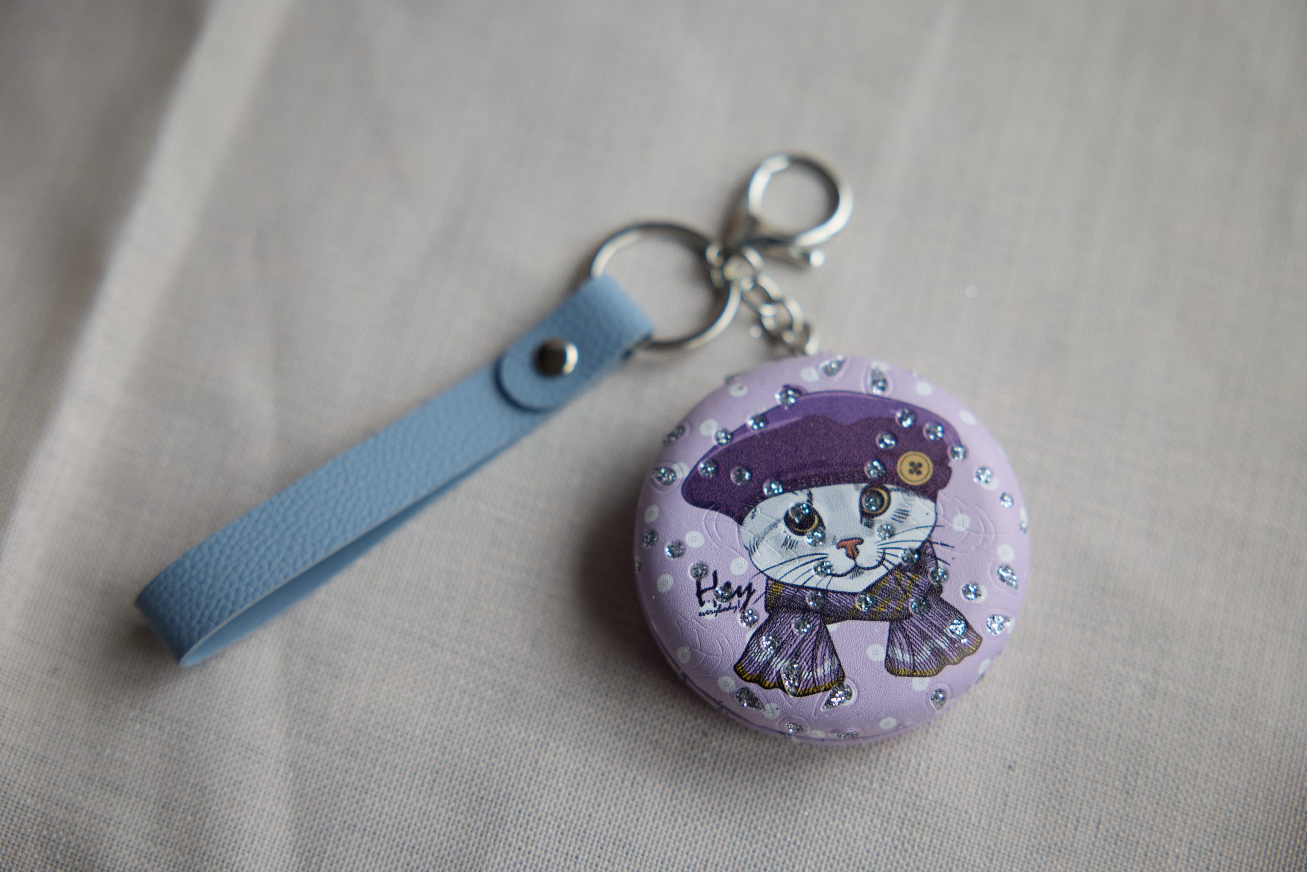 Aynanın kenarındaki anahtarlık aparatı sayesinde kolayca çantanıza asabilir, anahtarlarınıza takabilir ya da şık bir aksesuar olarak her zaman yanınızda taşıyabilirsiniz.