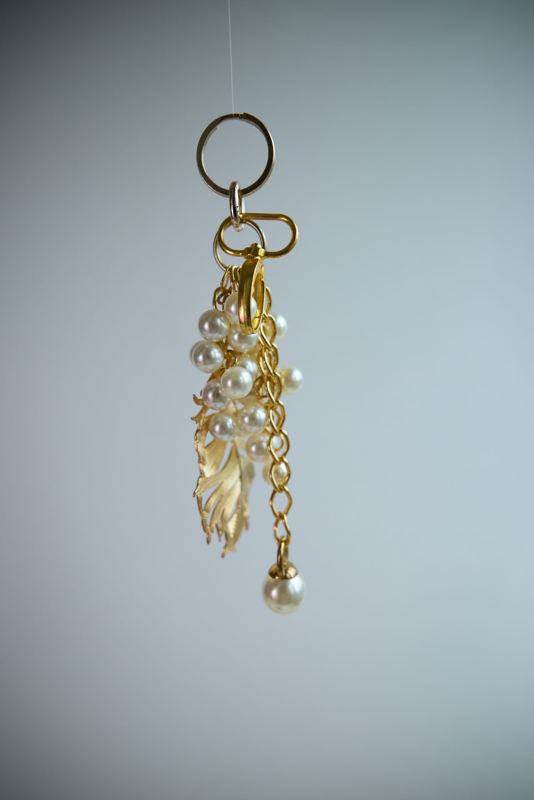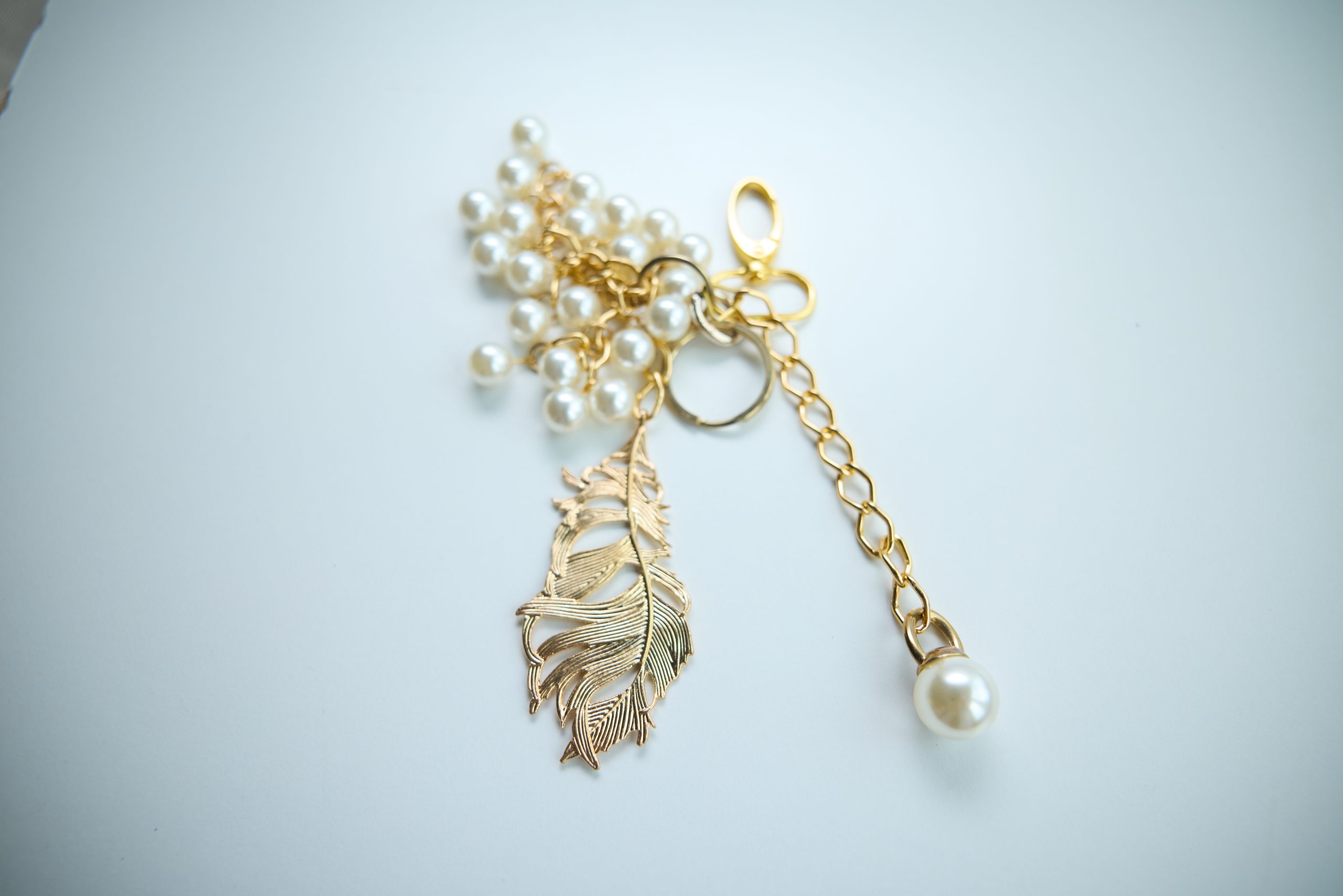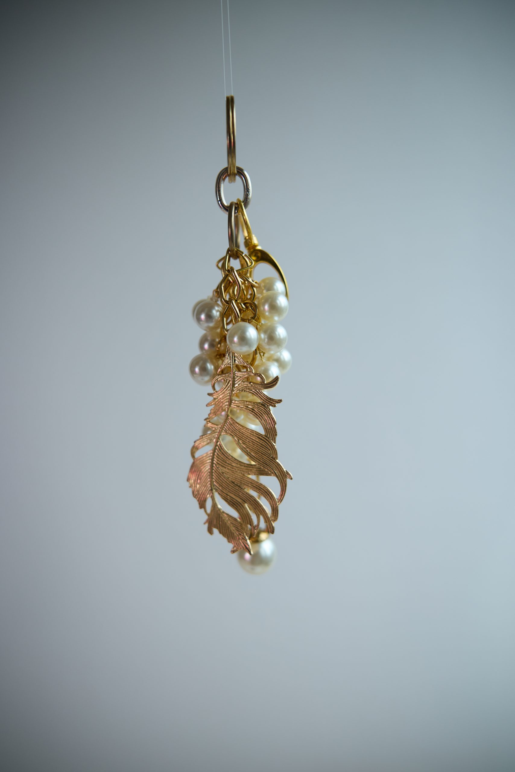 *Pluma Divina* İnci ve Tüy Detaylı Çanta Charm