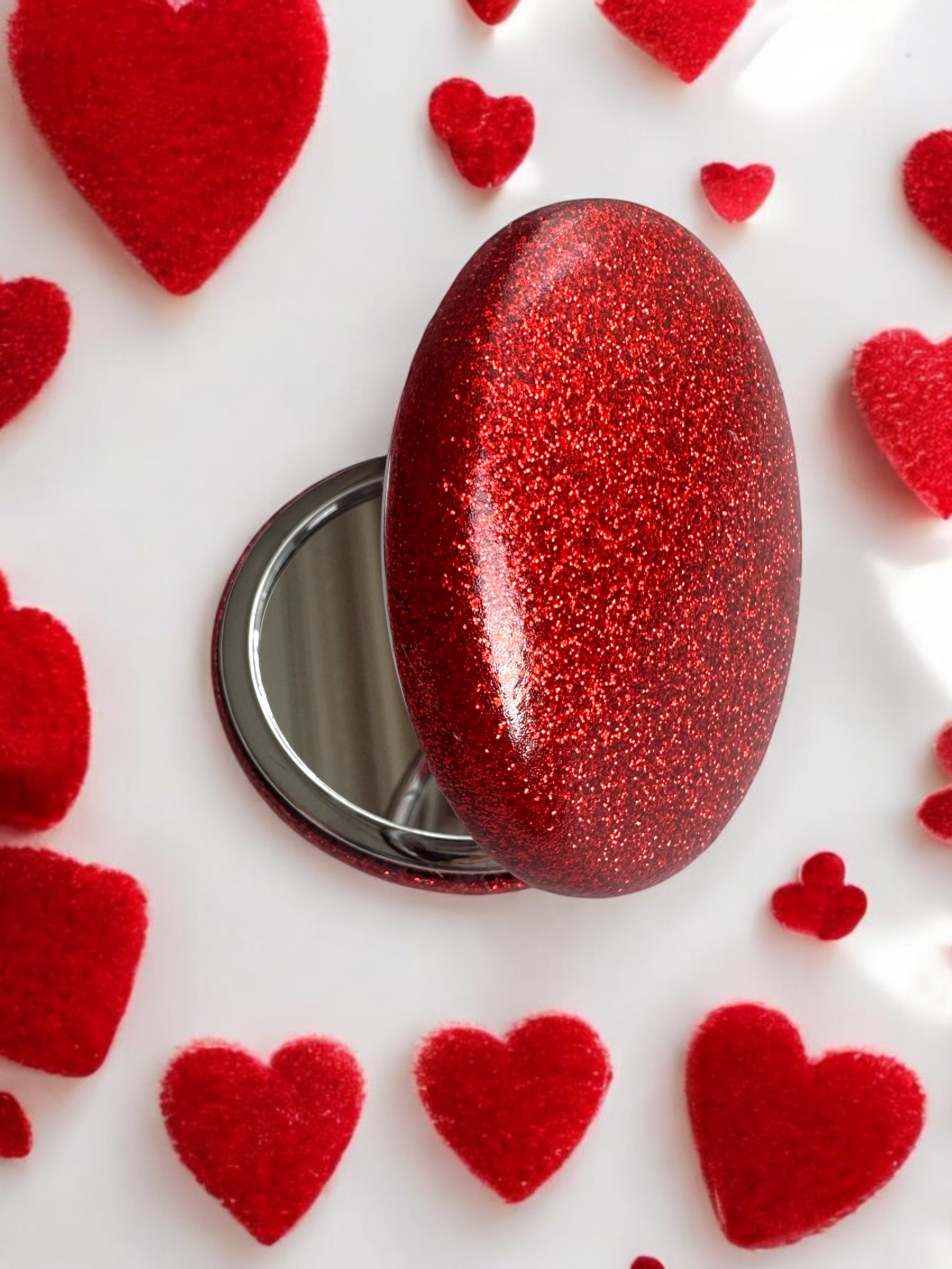 Her an, her yerde pratik kullanım sunan bu zarif cep aynaları; pembe, mavi, siyah, gold, kırmızı ve gümüş renk seçenekleriyle tarzınıza uyum sağlıyor. Simli tasarımıyla çantanızda hem şık hem de kullanışlı bir detay olacak.